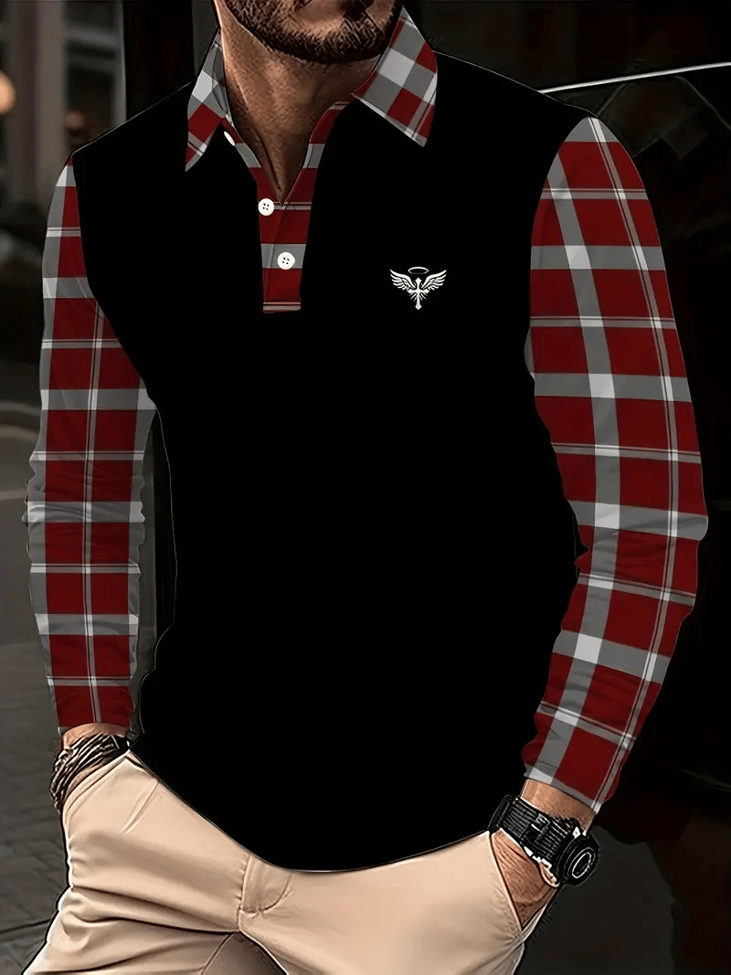 Men’s Business Casual Striped Long-Sleeved Polo Shirt